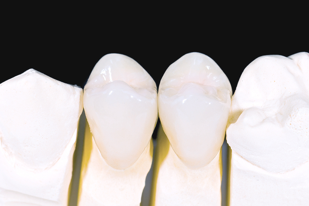 ジルコニアで製作したクラウンの表面にセラミックを焼きつけ、透明感を出してあります。